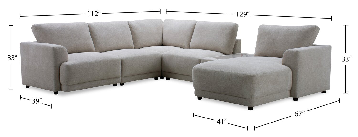 Voyage Modular 6-Piece Right-Facing Fabric Sectional with Console and Removable Back Cushions – Beige