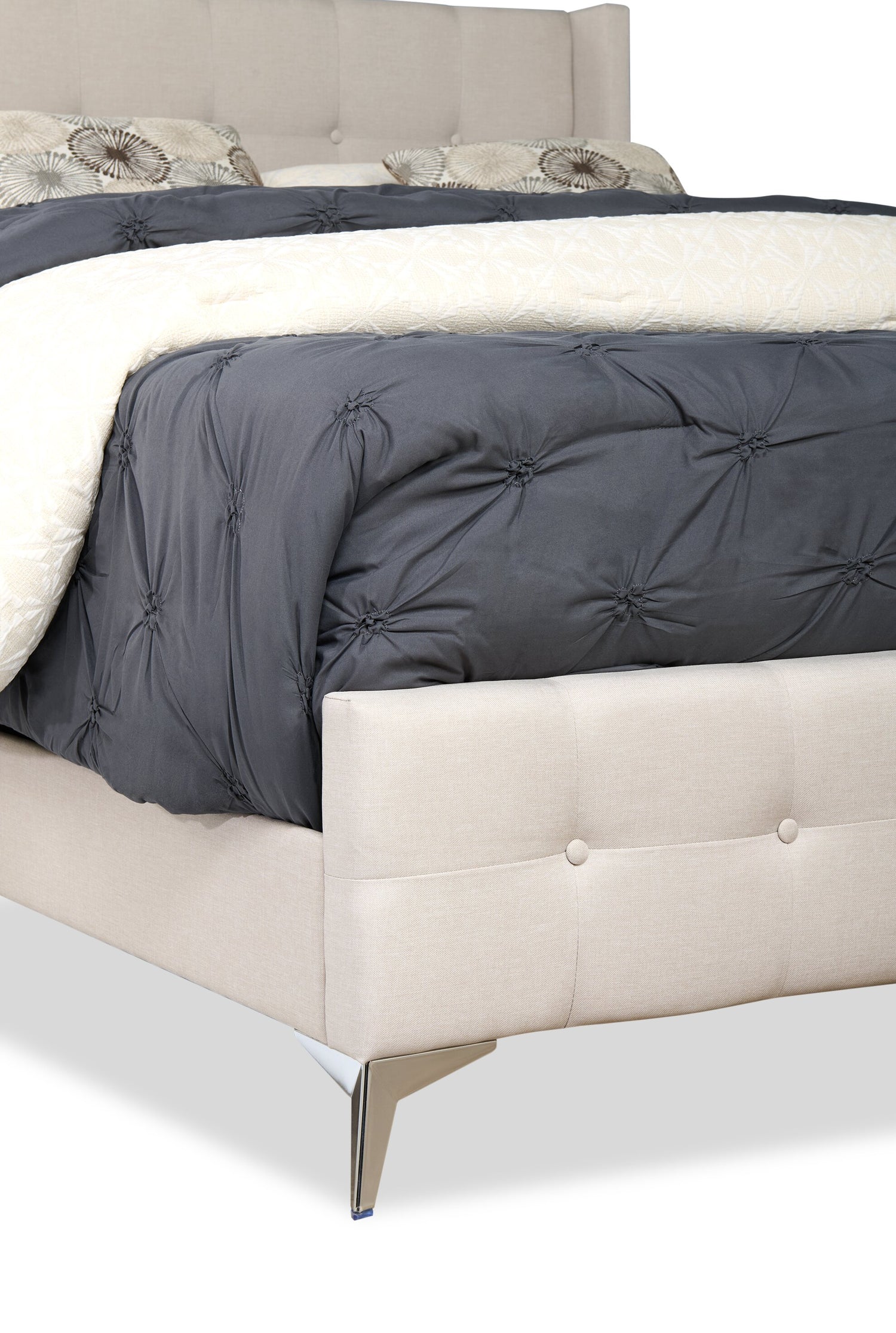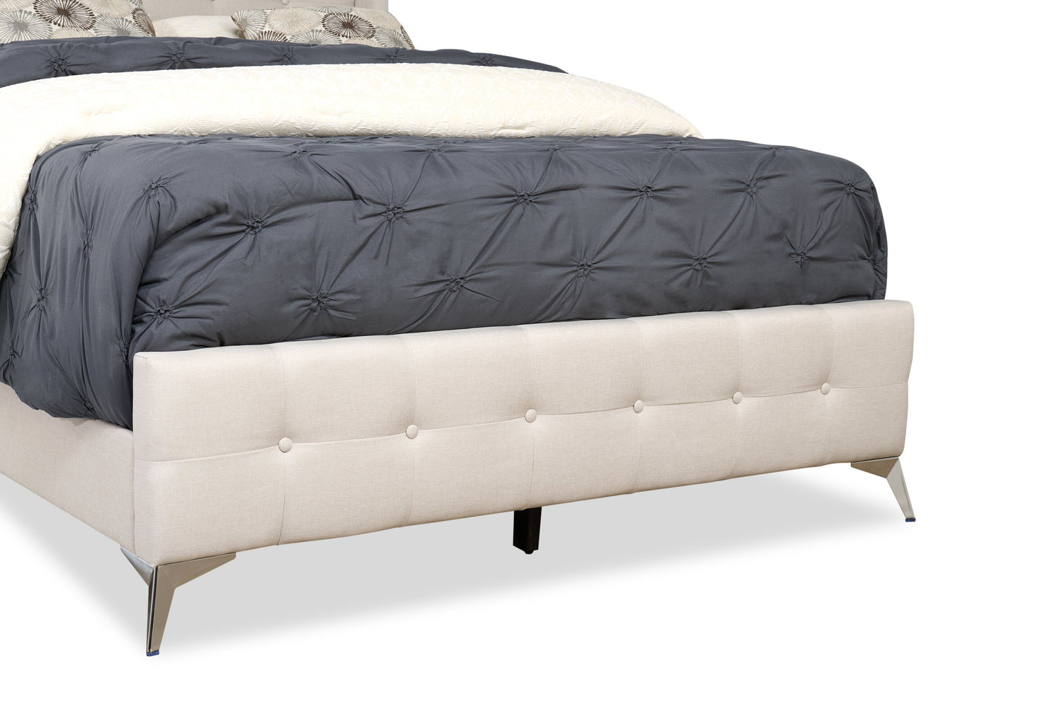 Zara Upholstered Bed in Beige Linen-Look Fabric - Button Tufted - Queen Size