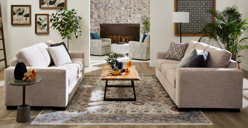Get comfy in a relaxed living space that’s all about low-key sophistication and soothing earthy hues.