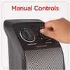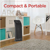 When it comes to portable heaters for indoor and outdoor use, this Black+Decker tower heater and fan combo is your top pick. With a manual programmable thermostat, carrying handle for easy portability, power in indicator light, and an oscillating feature that enables 75° even heating. Our small space heater's dimensions are 6. 85" x 6. 2" x 18. 7" and weighs only 3.7 lbs. Choose from 3 heat settings: fan, low heat (1000 watts), and high heat (1500 watts). Use this small space heater as a bathroom heater or office heater or wherever you need warmth the most. Safety features consist of overheat protection as well as a tip-over auto shutoff function. This oscillating space heater has a power cord length of 5.9 ft. 120v/60hz. Stay warm and cozy with this outstanding Black+Decker ceramic heater tower and fan combo.