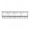 Ideal for an ever expanding household, the 60 in. Wide Hanging Entryway Shelf will keep your entryway belongings together in one place! Suitable for any front hallway, foyer or mudroom, the four compartments provide ample storage for everyone in your family. Fill with baskets, gloves, mittens, hats and books. Five large and four small hooks provide plenty of places to hang jackets, coats, hoodies, sweaters, bags and purses. Installs easily with our innovative hanging rail system.