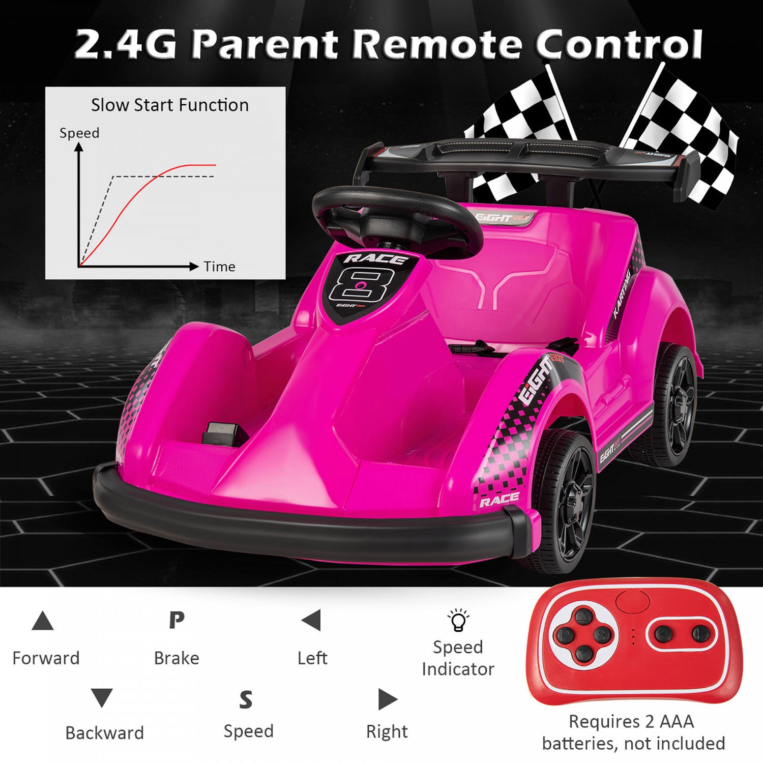 6v Battery Powered Go Kart Kids Ride On 4 Wheel Racer Rc W/ Bumper & Music Pink