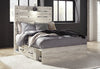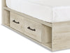 Shine some light on bedtime relaxation with this Abby full side storage bed. Rustic and industrial styles collide in natural-looking wood with a light white finish and dark metal nailheads. An LED-powered sconce light in the headboard provides some extra illumination for when you want to stay up late and read just one more chapter. A pair of USB ports on the side means you'll never have to worry about your phone dying in the middle of the night again. Each side has two built-in drawers let you keep everything you need right at hand. Curl up on the Abby tonight, and let some light into your dreams.