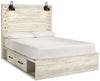 Shine some light on bedtime relaxation with this Abby queen side storage bed. Rustic and industrial styles collide in natural-looking wood with a light white finish and dark metal nailheads. Two LED-powered sconce lights in the headboard provide some extra illumination for when you want to stay up late and read just one more chapter. A pair of USB ports on the side means you'll never have to worry about your phone dying in the middle of the night again. Each side has two built-in drawers let you keep everything you need right at hand. Curl up on the Abby tonight, and let some light into your dreams.