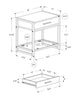 Bring style with function to any space in your home with this modern accent table in a fresh white finish and silver metal accents. The compact size and sleek style makes it easy to use as an end table next to your favorite chair or as a nightstand in a minimalist bedroom space. The handy storage drawer on metal glides is finished off with a silver metal handle and the tempered clear glass bottom shelf is perfect to stack books or a nice plant for a decorative touch. This versatile side accent table made from quality MDF material will serve many functions in your home for years to come! Assembly is required.