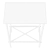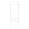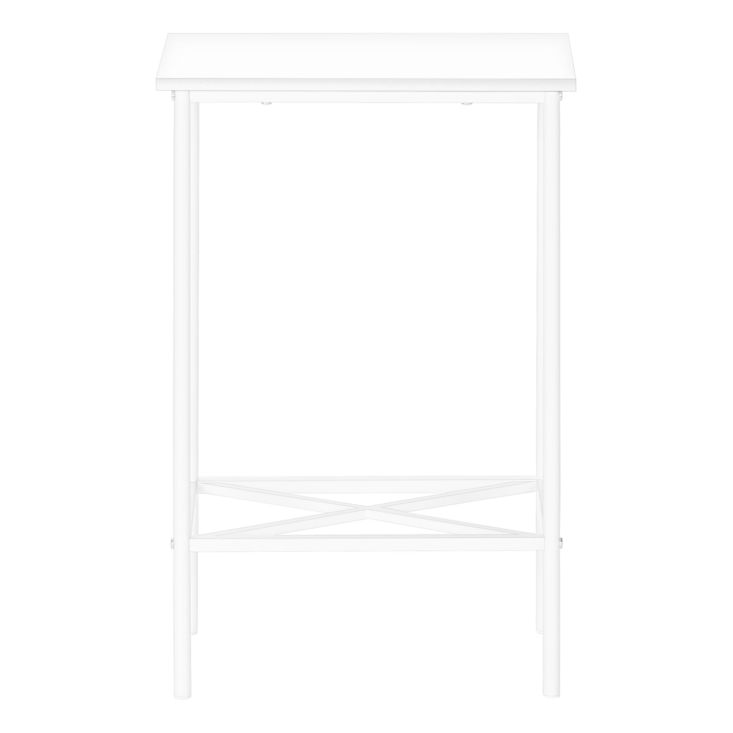 This 2-tier accent table features an open metal shelf that is both functional and decorative. Use the black metal storage shelf to hold unbreakable items, like a folded blanket or a plant in a plastic pot, or keep it empty to show off its X-shape design, connected by a square. The rectangular tabletop in an alluring white finish offers a generous surface for placing a small table lamp and resting a cup of coffee or a mobile device. Round white metal legs have a delicate look but offer stability. Finished on all sides, this versatile end table with storage can be positioned in narrow or wide spaces as desired in a living room or bedroom.