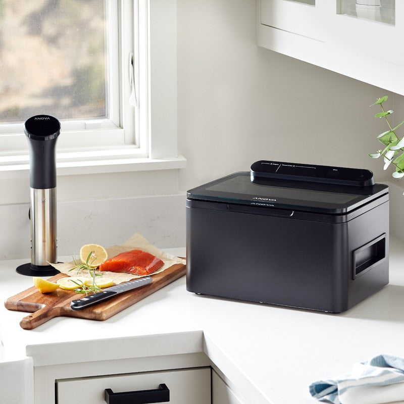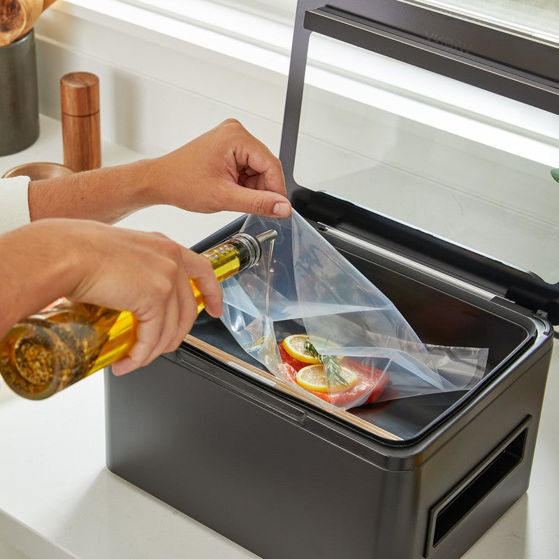 Think outside the bag – it's more than just a sealer. Chamber sealers are renowned by chefs for their ability to utilize a pressurized chamber to achieve an airtight seal while providing a mess-free solution to sealing liquid or liquid-rich foods. The Anova Precision™ Chamber Vacuum Sealer is a fully operational chamber sealer that’s been sized down substantially and made more intuitive to operate than those typically found in professional kitchens. Pre-programmed settings allow you to seal like a pro or take advantage of the pressurized environment to make things like quick pickles, infused alcohols, flavored oils, and much more, as easy as the touch of a button.