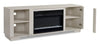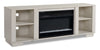 Your living space is sure to glisten with this Antoni electric fireplace TV stand. Its simple white design adds a touch of modern style to your home’s decor while a crystal ember firebox brings sparkling detail and is great for heating small spaces. The realistic flame effects, seven flame levels and multi-colour options make it a fireplace that’s ready to set the right mood for your movie nights. It also has a No Heat mode so you can enjoy it even on the warmest nights. Additionally, two glass cabinets with two shelves let you store all your remotes, movies and additional electronics.