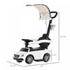 Aosom 3 In 1 Officially Licensed Push Ride On Car For Toddlers Stroller Sliding Walking Baby Push Pedal Car With Sun Canopy Horn Sound Safety Bar Cup Holder Ride On Toy For 1-3 Years Old, White