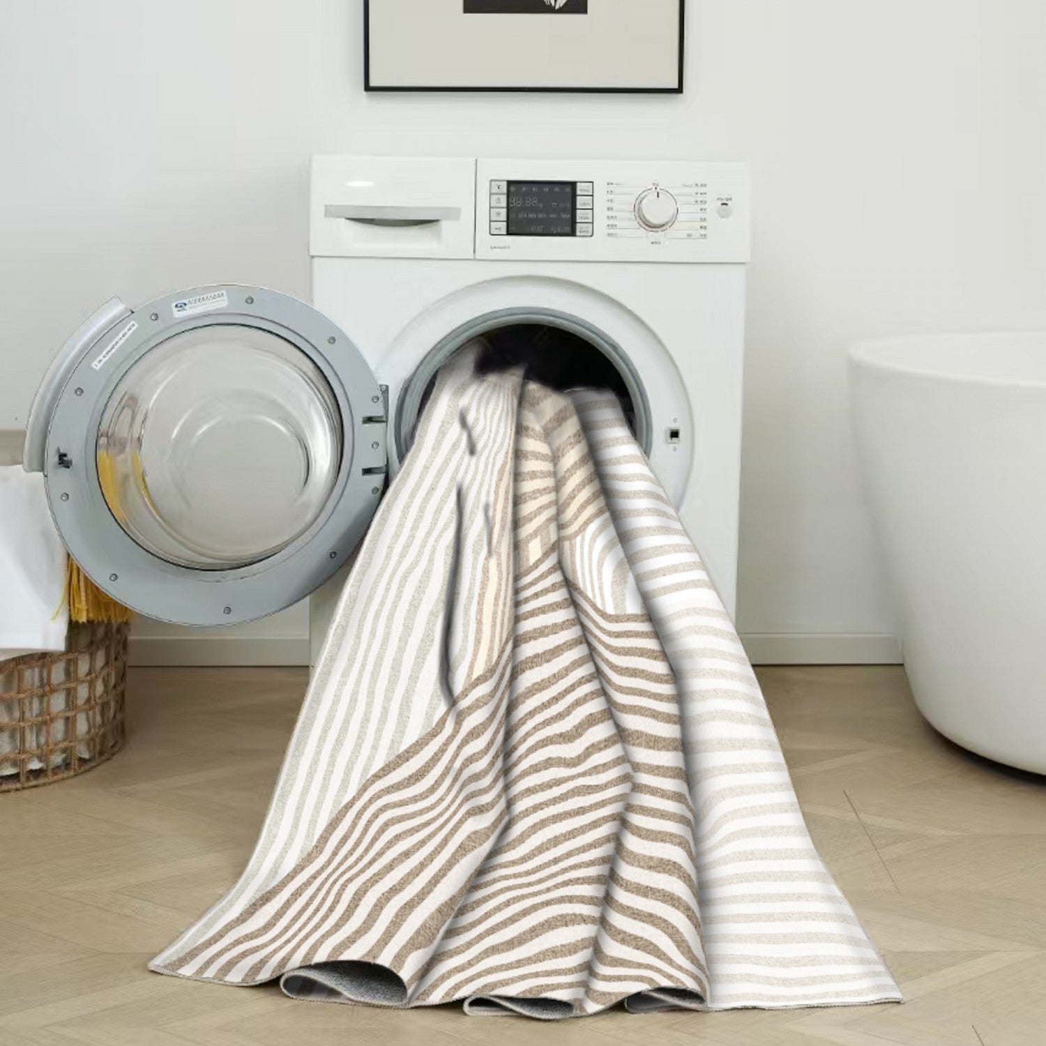 Fall in love with the perfect blend of comfort and convenience—our machine washable, non-slip, low-pile area rug is made for modern living. With an irresistibly soft touch underfoot and a timeless design that effortlessly complements any space, this cream geometric style carpet is the perfect decor for your living room, bedroom, or dining area.