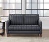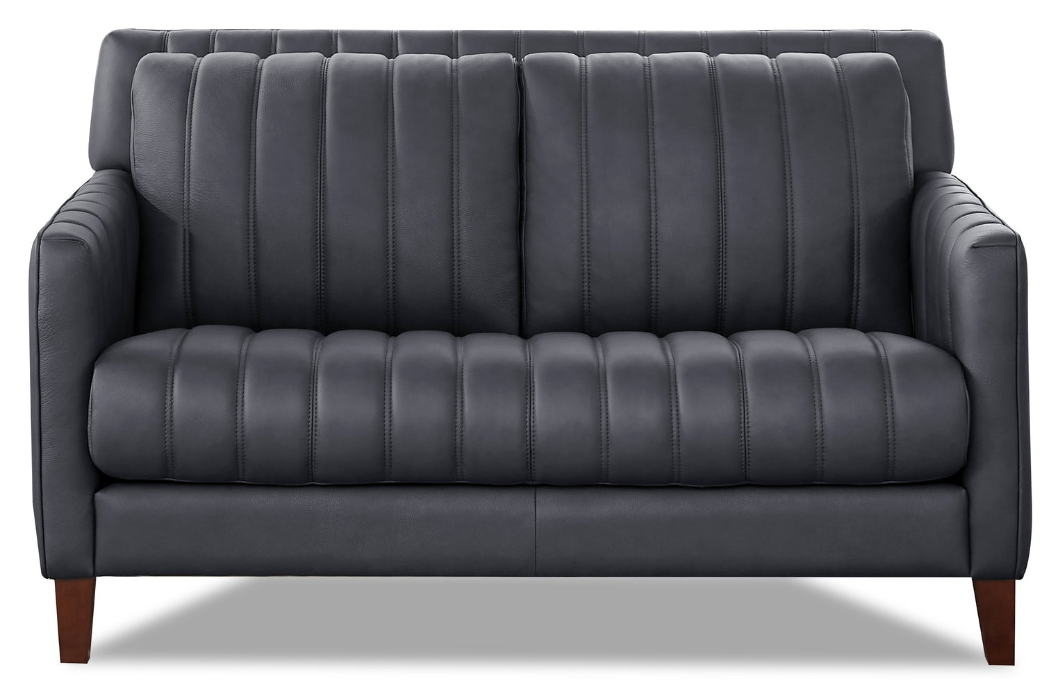 This Archer loveseat is handmade by skilled craftsmen using a kiln-dried solid wood frame. It is covered in soft, supple top-grain leather on all seating areas and armrests. The no-sag seat springs and individually wrapped pocket coils provide a balanced weight distribution for maximum durability and lasting comfort. The seat cushion has memory foam for added comfort and support. With fresh styling, the vertical channel seat and back design of the Archer create a simple yet elegant statement in your home. This loveseat is covered in stunning sueded leather dyed in midnight grey and is stain resistant, soft and easy to clean. Taking center stage, the Archer is sure to bring a touch of modern chic to your space.