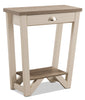Decorate in style with this Arika console table. With its angular legs and two-tone design, this hall table is sure to make a chic statement. Zinc hardware and a dark taupe tabletop contrast with the ivory base, while a lower shelf gives you the space to add a little pizazz to your decor. An attractive zinc pull adorns the convenient storage drawer so you can easily access your wallet and keys in a jiff.