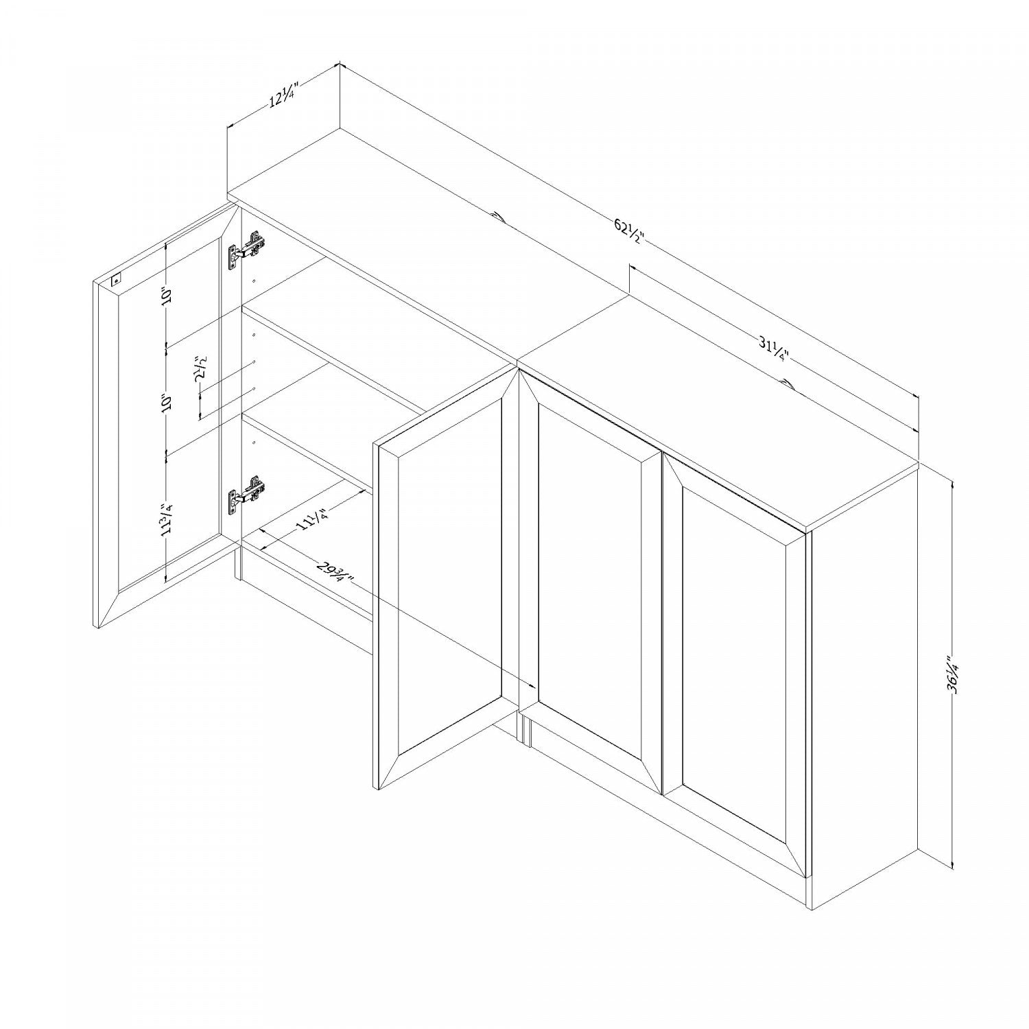 Width: 62.5" (158.8 cm) Height: 36.25" (92.1 cm) Depth: 12.25" (31.1 cm)