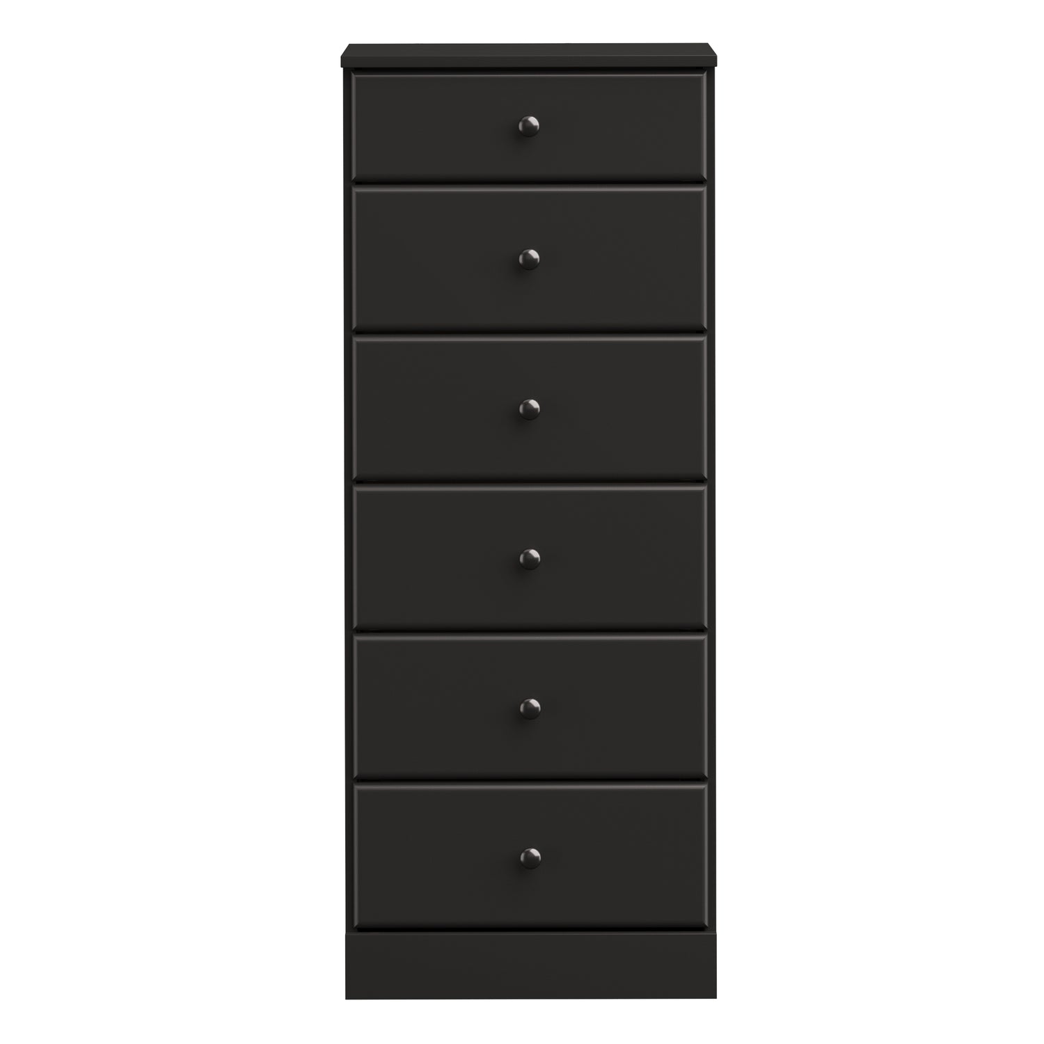 This Astrid 6-Drawer Tall Chest is your small space solution. It's contemporary design and clean lines will complement any decor. Profiled drawer fronts and solid wood knobs help provide a timeless look. Use on its own or pair it with other matching pieces from the Astrid Collection.