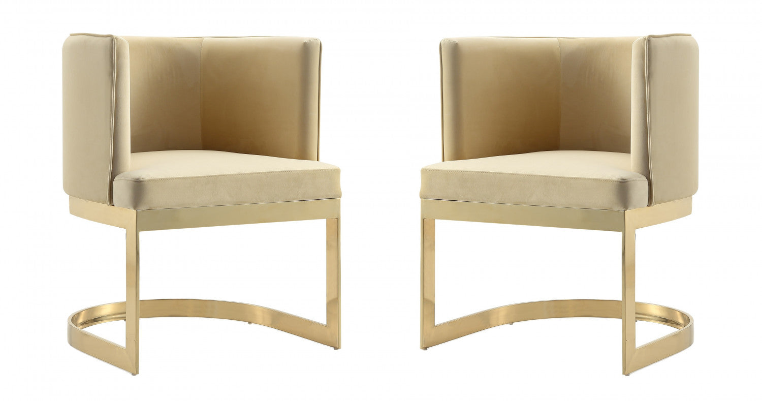 Aura Modern Velvet Metal Dining Chair in Sand - Set of 2