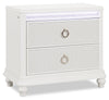 Let glitz and glamour take centre stage in your space with this Ava nightstand. Made from wood and a veneer finish, this piece is as durable as it is ravishing. The white hue provides a neutral backdrop for the radiant crystal-like accents that adorn the drawers, while the ambient LED lighting seen across the top edge dazzles and brightens. You’ll enjoy plenty of storage for your bedroom essentials thanks to the two roomy drawers. Show off your fashionable tastes with the Ava.