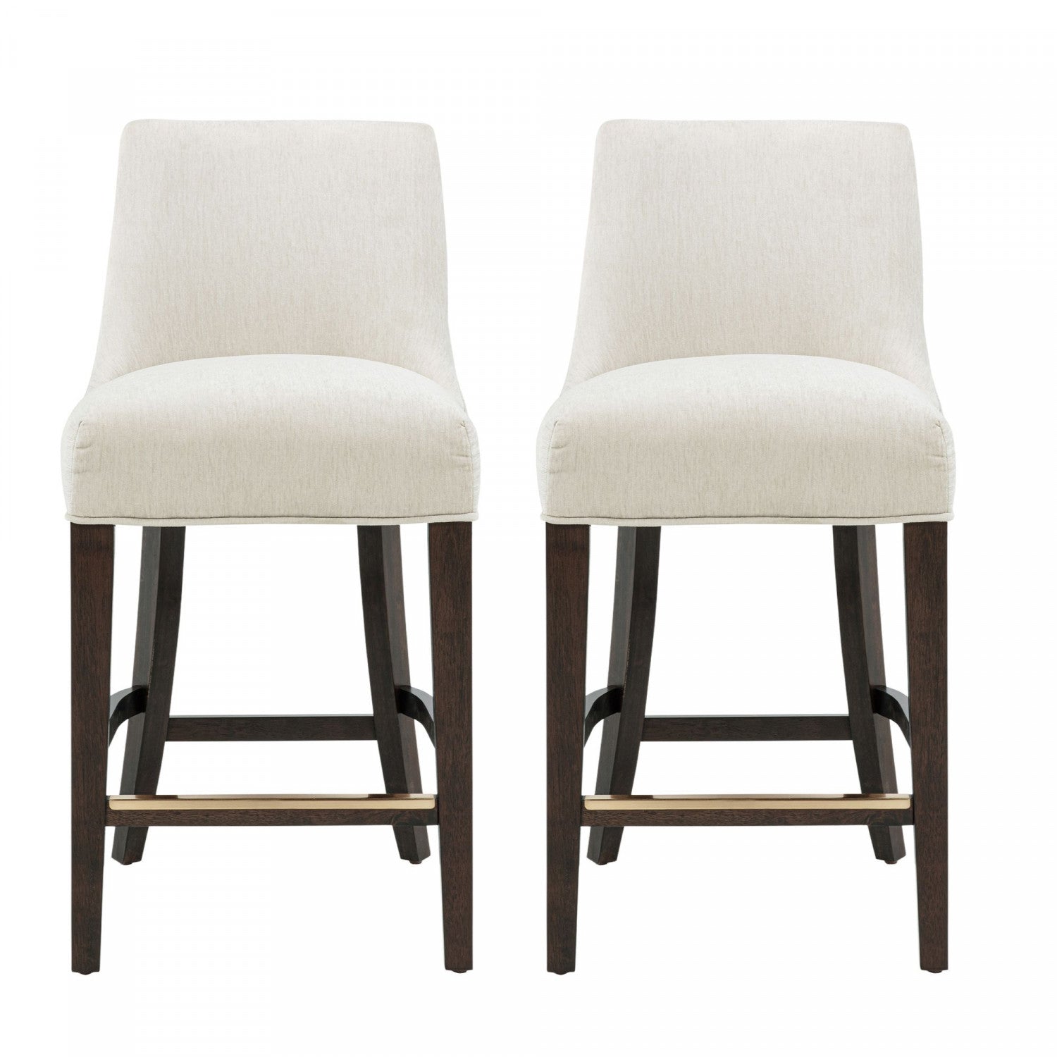 Beever Modern Chenille Wood Counter Stool in Cream - Set of 2 Bar Stool
