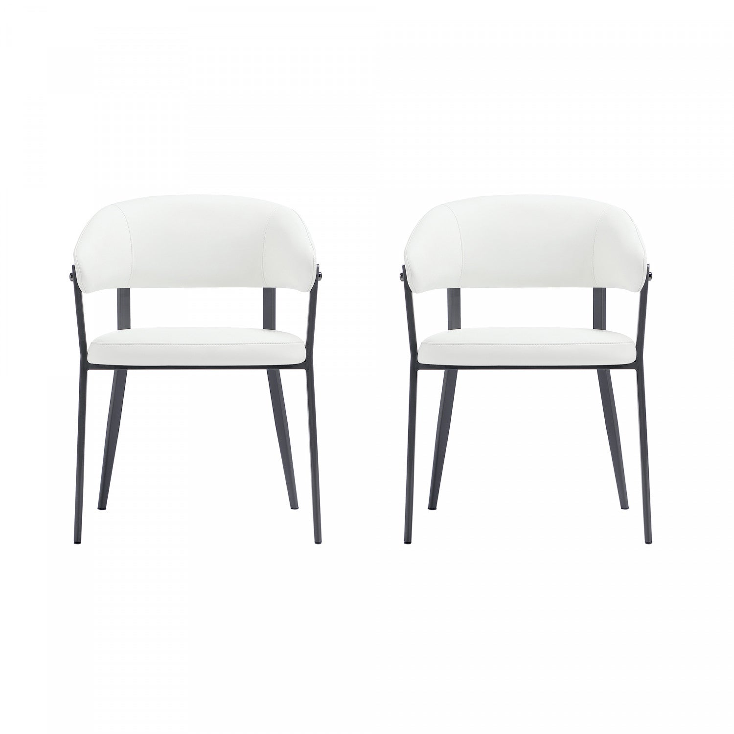 Belle Modern Metal Upholstered Dining Chair in White - Set of 2