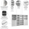 Enjoy the freedom to design your dream walk-in closet with the Bestar Florence 132W x 16D Modular Walk-In Closet System with Drawers and Shoe Shelves Shaker Style. Imagine creating the space you want, right within the space you have. Space that keeps your belongings organized and easy to find — so your favourite sweater isn’t hiding, but right where you need it. With 15 adjustable shelves, 8 smooth-gliding and soft-closing drawers, 3 removable clothing rods and 6 adjustable shoe shelves, you can tailor your storage to fit your needs — whether you’re maximizing shelf space for folded essentials or adding hanging room for garments. It’s designed to help you add, swap and rearrange each component to stay ultra-organized as life unfolds. The 6 angled, front-lipped shoe shelves keep your footwear beautifully displayed and easy to access, while the classic shaker trim and sleek metal handles bring timeless style to your closet. Crafted from eco-conscious materials, this system embodies Bestar’s dedication to sustainability and quality.