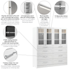 Enjoy the freedom to design your dream walk-in closet with the Bestar Florence Modular Walk-In Closet System with LED Lights, Shelves, Drawers, and Doors, Shaker Style. Imagine creating the space you want, right within the space you have. Space that keeps your belongings organized and easy to find — so your favourite sweater isn’t hiding, but right where you need it. With 10 adjustable shelves, 8 smooth-gliding and soft-closing drawers, 4 soft-closing frosted glass doors, and 2 removable clothing rods, you can tailor your storage to fit your needs — whether you’re maximizing shelf space for folded essentials or adding hanging room for garments. It’s designed to help you add, swap, and rearrange each component to stay ultra-organized as life unfolds. Two rechargeable motion-sensing LED lights illuminate your closet with ease, while the classic shaker trim and sleek metal handles add timeless elegance. Crafted from eco-conscious materials, this system embodies Bestar’s dedication to sustainability and quality.