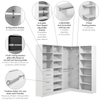 Enjoy the freedom to design your dream walk-in closet with the Bestar Florence Modular L Shaped Walk-In Closet System with Rods, Drawers, and Shoe Shelves, Shaker Style. Imagine creating the space you want, right within the space you have. Space that keeps your belongings organized and easy to find — so your favourite sweater isn’t hiding, but right where you need it. With 5 adjustable shelves, 4 smooth-gliding and soft-closing drawers, 4 adjustable clothing rods, 6 adjustable shoe shelves, and 5 fixed corner shelves, you can tailor your storage to fit your needs — whether you’re maximizing shelf space for folded essentials or adding hanging room for garments. It’s designed to help you add, swap, and rearrange each component to stay ultra-organized as life unfolds. The 6 angled, front-lipped shoe shelves keep your footwear beautifully displayed and easy to access, while the classic shaker trim and sleek metal handles bring timeless style to your closet. Crafted from eco-conscious materials, this system embodies Bestar’s dedication to sustainability and quality.