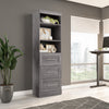 The Bestar Pur 25W Closet Organizer with Drawer is the perfect storage solution for small spaces. This shelving unit serves as the perfect tall narrow bookshelf, closet organizer, linen cabinet, or simply as a great way to round out your bedroom set. Add the storage cabinet to your Pur Collection Murphy Bed (sold separately) to finish off your room with all the storage you need or set up the unit wherever you need some extra organization. You can also pair it with other closet organizers from the same collection to create the perfect walk-in closet storage. The shelf organizer includes fixed and adjustable shelves to allow for customizable decoration or storage of any room, from your bathroom to your guest bedroom. The drawers open on smooth ball-bearing slides for an easy reach to clothing or supplies. Move the shelves as you see fit to accommodate items of various sizes. The drawers’ shaker-inspired trim and metal handles create a transitional styling that will enhance your home decor. The tall bookcase packs plenty of vertical storage into a compact footprint so you can get organized without overwhelming your home. This closet organizer with drawers is backed by the Bestar 10 Year Manufacturer’s Warranty. North American made with local and imported parts.
