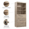 The Bestar Pur 36W Closet Organizer with Drawers is the perfect storage solution for a crowded closet, a modest bedroom, or a small laundry room. The drawers’ shaker-inspired trim and metal handles offer a transitional styling that is sure to complement your space. Place the closet system in your bedroom to organize your clothes and accessories and keep your nicest dresses, shirts, or dress pants wrinkle free. Get your mudroom in order with clothing rods to hang your coats and jackets, and shelves and drawers to store your hats, bags, gloves, and other essentials. Or, use it in your laundry room to air dry your clothing and store fresh towels and spare sheets. Simply remove some of the adjustable shelves to customize the unit to suit your needs. The shaker-style drawers glide on smooth ball bearing slides for an easy open and close. Designed for use as a standalone closet organizer or as part of a larger configuration when paired with coordinating items from the Pur Collection (sold separately), the storage cabinet provides ample opportunities for keeping your home in order without overwhelming your floor space. This shelving unit also looks great when paired with a Murphy Bed from the same collection. This storage cabinet is backed by the Bestar 10 Year Manufacturer’s Warranty. North American made with local and imported parts.