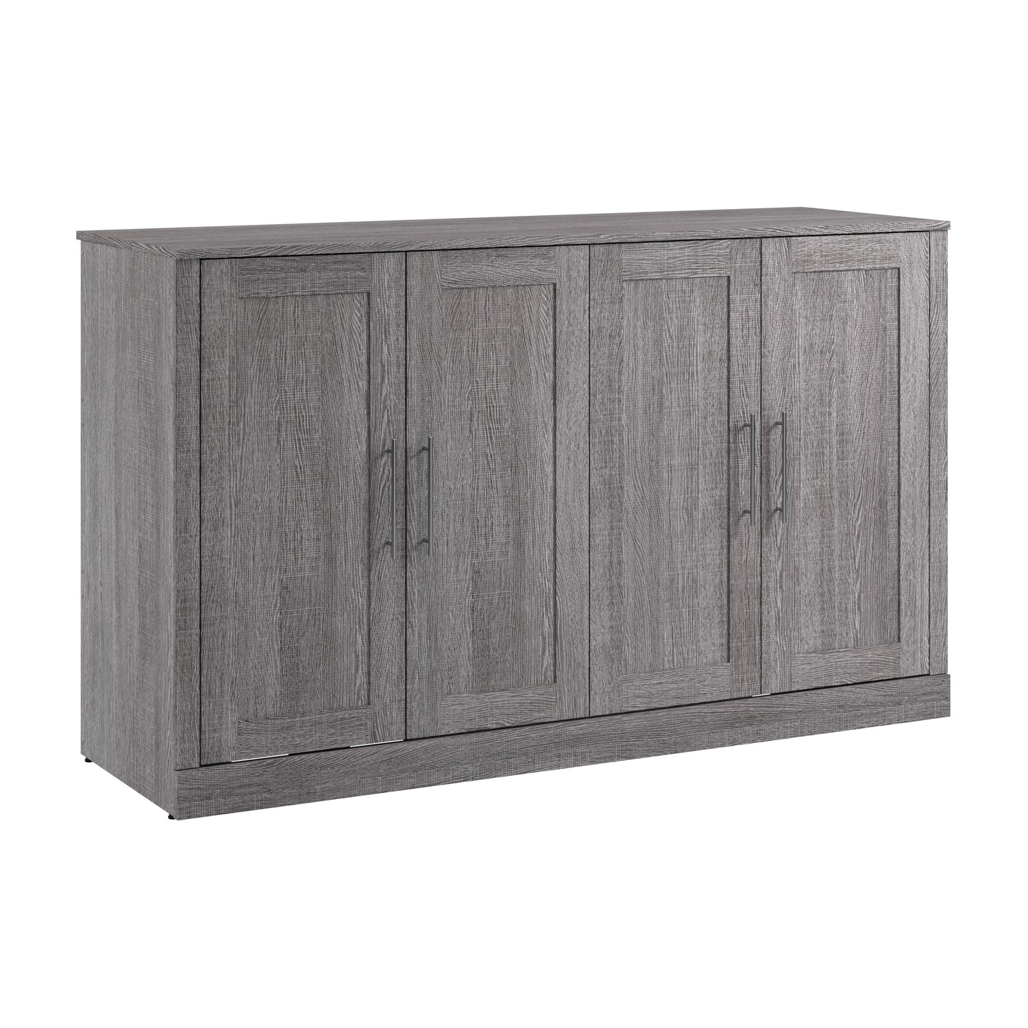 The Bestar Pur queen cabinet bed is a space-saving solution ideal for a multipurpose guest bedroom. When the cabinet is closed, you have a lovely sideboard that blends into any room. When the cabinet is open, it reveals a comfortable foldable bed. The included queen folding foam mattress provides comfort to anyone using the bed for a restful sleep. The cabinet comes with metal handles to create a sleek look that beautifully complements various home decor styles. The cabinet doors’ shaker-inspired trim also adds a touch of style to your space. The top of the sideboard can be used to place your favourite decor items. You can add a convenient guest bed to your living room, your home office, your dining room or any other room thanks to this ingenious bedroom solution.