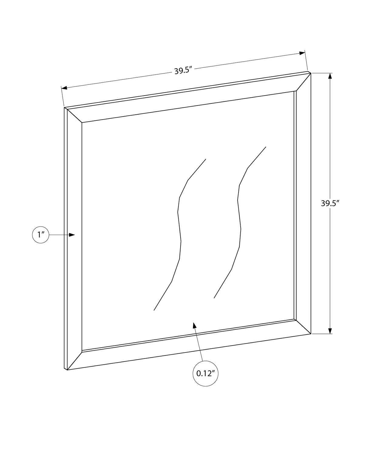 Width: 39.5" (100.3 cm) Height: 39.5" (100.3 cm) Depth: 1" (2.5 cm)