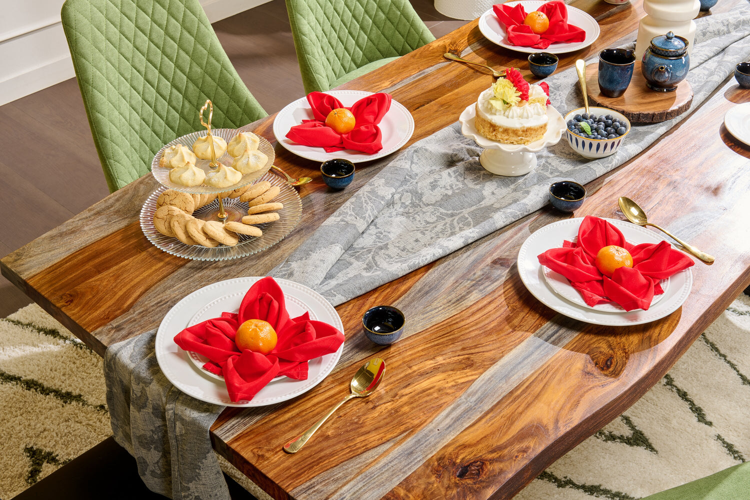 Inspire your home with rustic character with this Bowery dining table. Like fine dining, the beauty of this design is all in the details. Up top, a solid plank of sheesham wood makes up the entire tabletop – no veneers, just polished wood. The live edges and grey undertones serve as stylish sidekicks to the dramatic woodgrain. And while most staple-shaped bases stick to rigid right angles, the trapezoid legs take this table from stare-worthy to stunning.