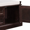 Keep your entryway organized with the storage bench, combining classic design with everyday functionality. This bench features four doors with adjustable shelves, perfect for storing shoes, books, or other essentials. Crafted from solid wood and mdf, it offers long-lasting durability. A removable 2. 2-inch velvet cushion provides comfort while sitting. Retro-style aluminum handles add a vintage touch, making this bench a stylish addition to your hallway, mudroom, or living room.