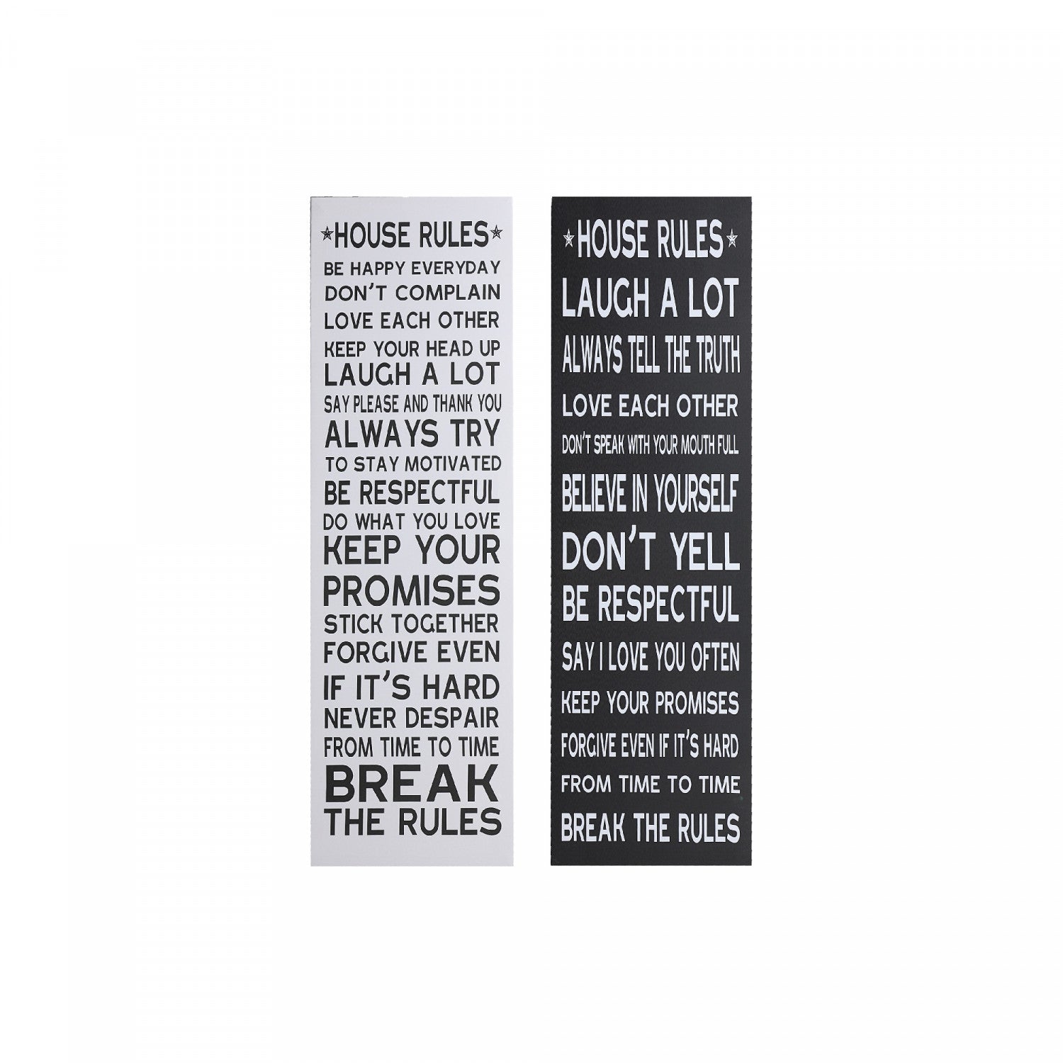 Add style and positivity to your room's empty wall with this magnificent canvas wall art. It comes printed with inspirational House Rules text that makes a positive impression on the readers mind. It is made from high-quality canvas and fade-resistant inks. This ready-to-hang wall art will look flawless in your living room, bedroom, or any space. You can easily clean it with a dry cloth. Hang anywhere with the attached hanger at the back. This item is sold as 2 pcs.