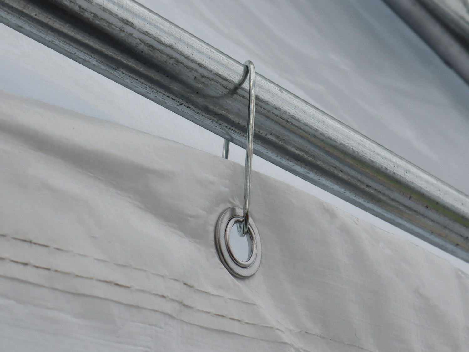 | Key Features | Cover: Woven polyethylene, 7 oz per square meter (1600 denier), with 2 windows and 2 doors included UV protection E.V.S. Maintains flexibility in cold winter weather 1 1/4” pipe structure, 4’ section One year warranty against manufacturing defects |