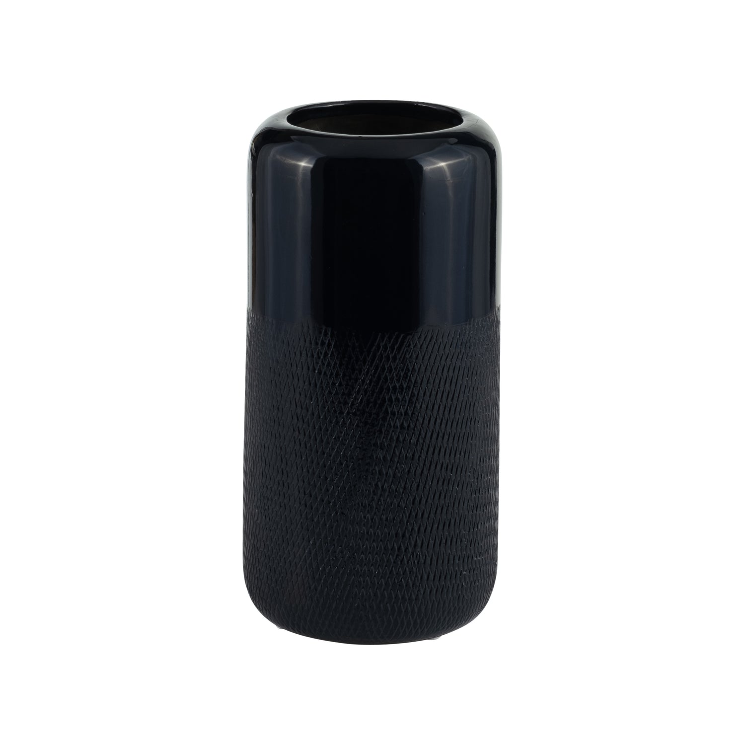 Ceramic 10" Grooved Vase - Navy Blue