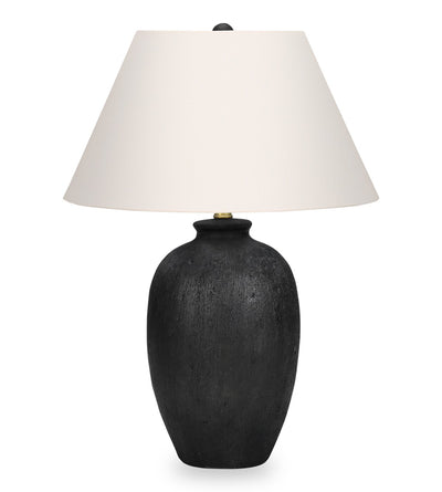 24" Black Textured Ceramic Table Lamp with Ivory Shade