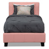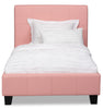 Make a fashion statement in your child's bedroom with this sleek and contemporary Chase twin bed. Built with a stable pine wood frame, this chic bed is covered in easy-to-care-for faux leather. The vibrant, pink upholstery adds instant energy to any child's bedroom, while also pairing well with many different bedding patterns. This stylish sleeping space also comes with five bed slats to provide extra support for your boxspring (required).