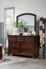 Add a traditional touch to your bedroom with this Chelsea dresser. Of the seven functional drawers, each slides in and out effortlessly. All drawer fronts are decorated with detailed frames and antique brass-finished hardware. The top drawers are each lined with felt for extra special treatment for your personal treasures. The radiant cherry veneers look ravishing in natural light, making for a classic colour that tends to grow richer in character with each passing year. Behind the veneers, pine solids keep this piece strong yet relatively lightweight. Enjoy this piece on its own or else pair it with the matching mirror from the same collection (sold separately).
