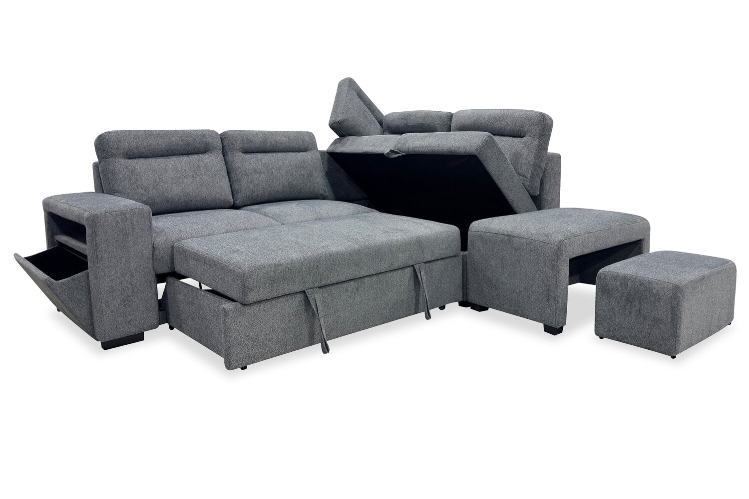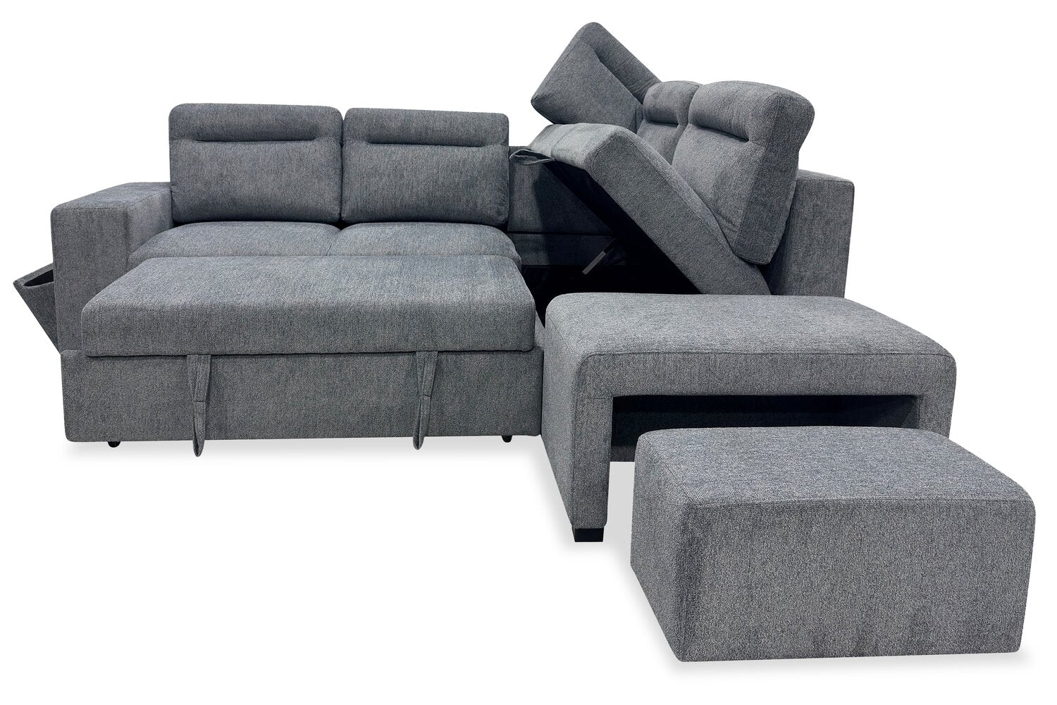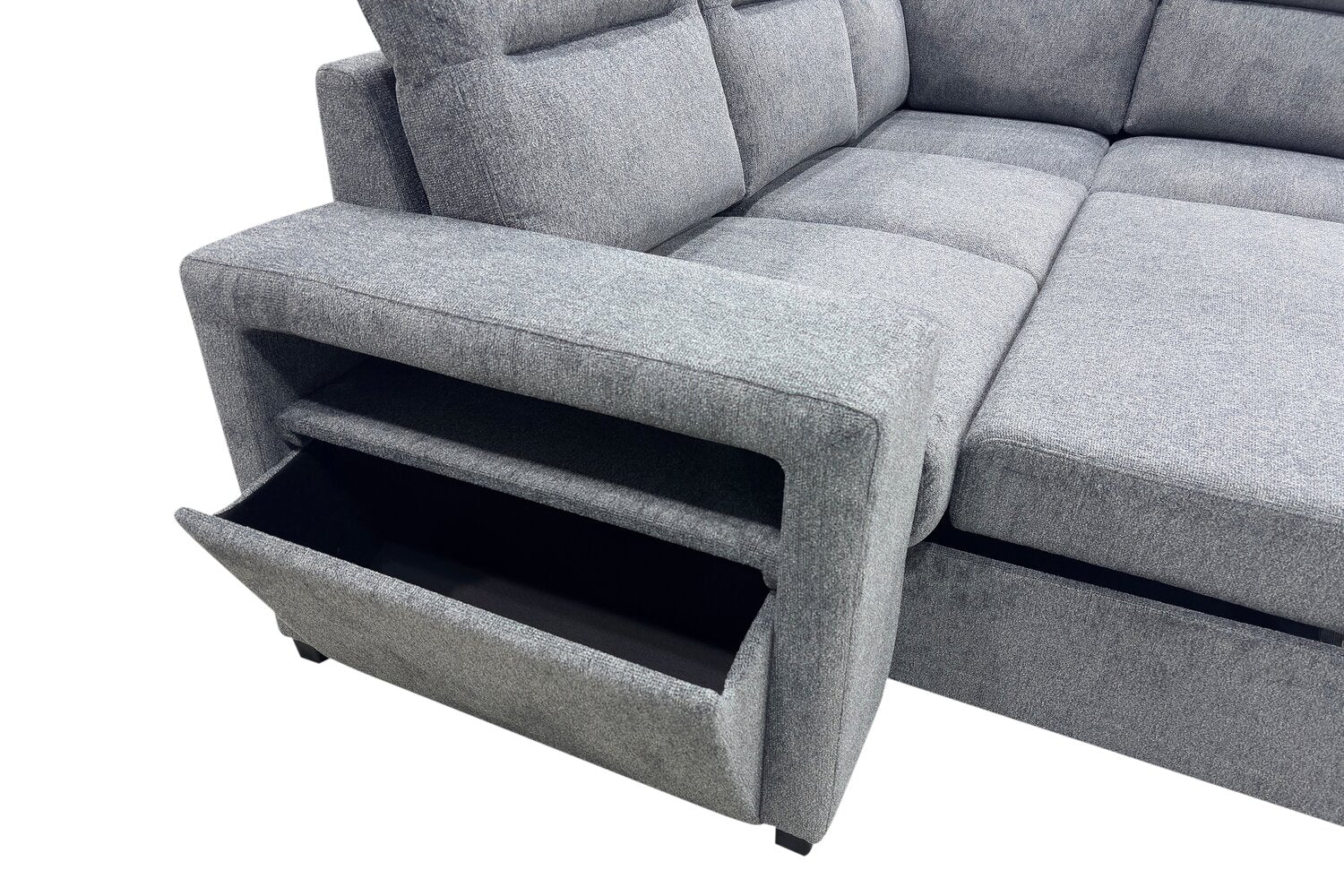 | Accent Details | Neutral grey fabric gives this piece a luxurious vibe that pairs wonderfully with the black furniture legs. |