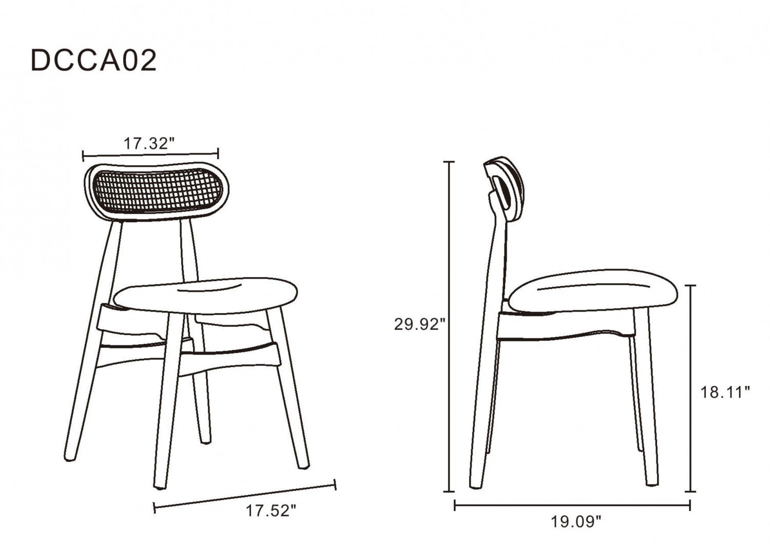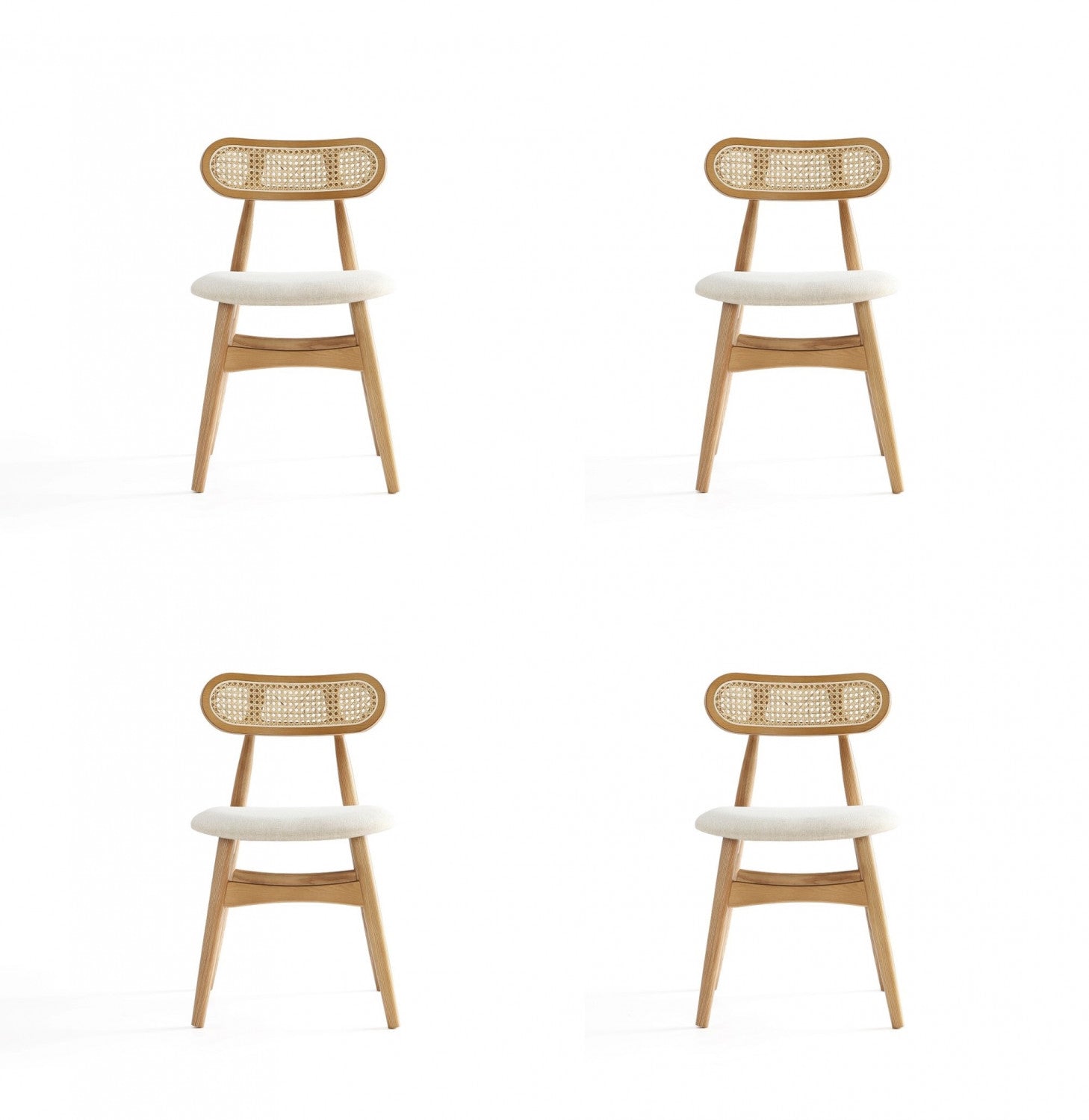 Colbert Industry Chic Cane Back Wood Upholstered Dining Chair in Natural - Set of 4