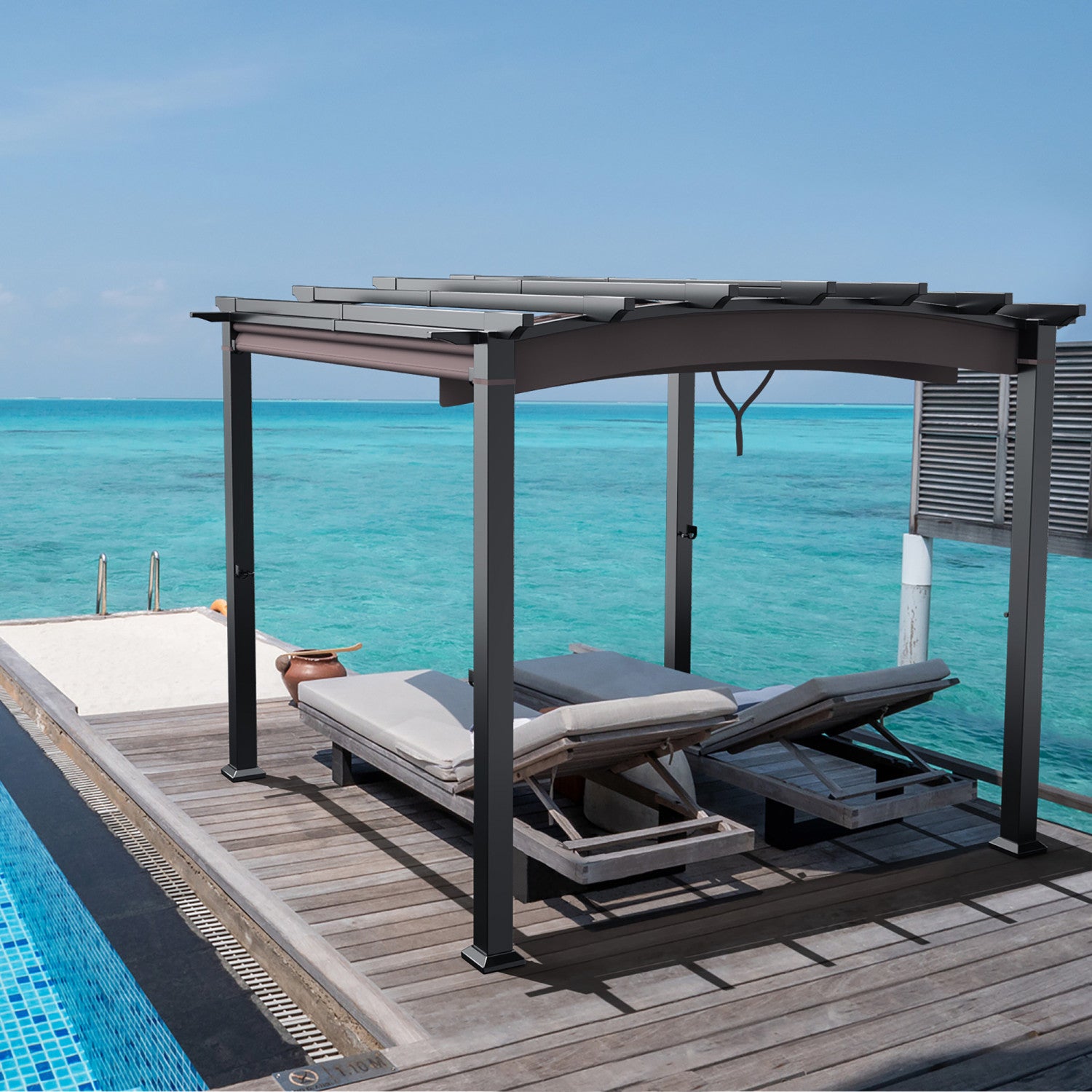 Costway 10 X 10ft Patio Pergola Gazebo Sun Shade Shelter W/retractable Canopy