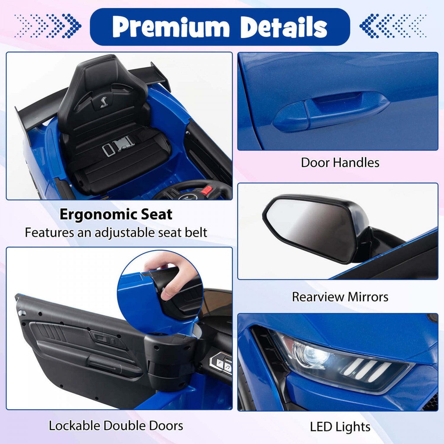 Costway 12v Licensed Ford Mustang Shelby Gt500 Kids Ride On Car With Remote Control Navy
