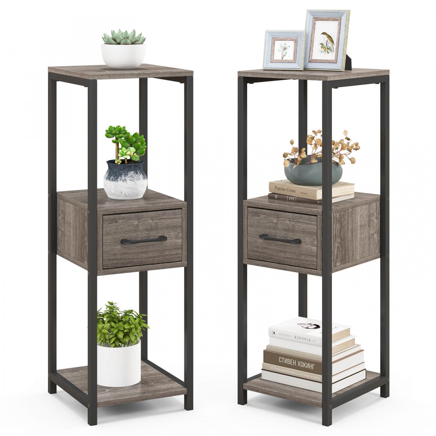 Costway 2 Pack 3 Tier Tall Metal Plant Stand Indoor Plant Table With Drawer Anti-tipping Devices