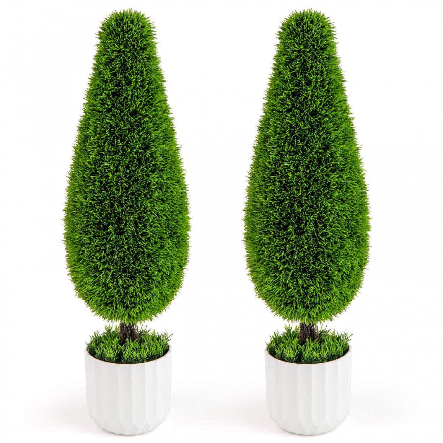 Costway 2 Pack Artificial Cedar Plant 3 Ft Potted Teardrop Shaped Bush With Premium Pe Leaves