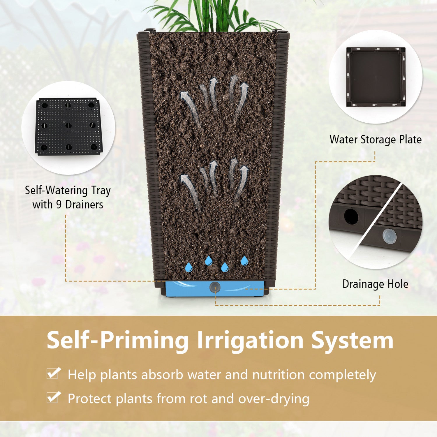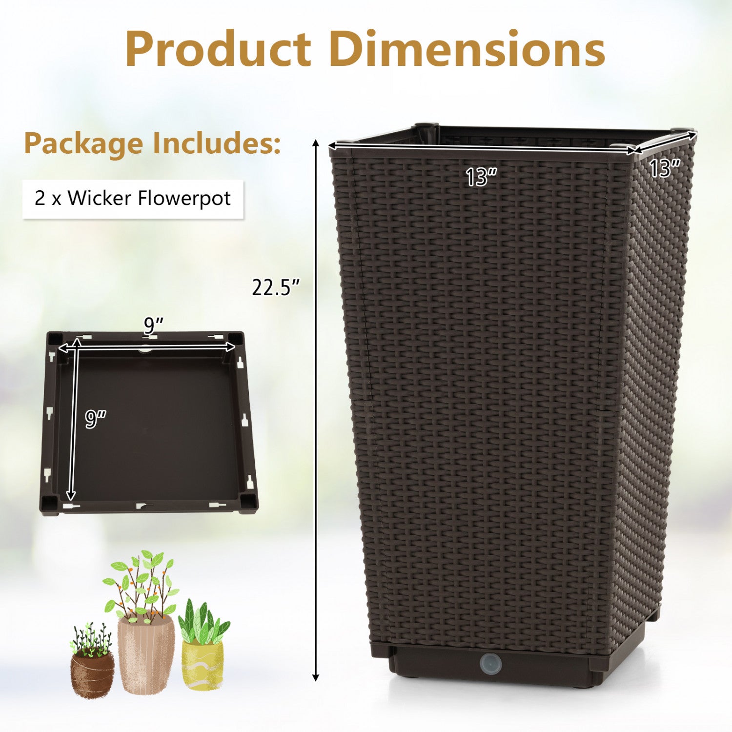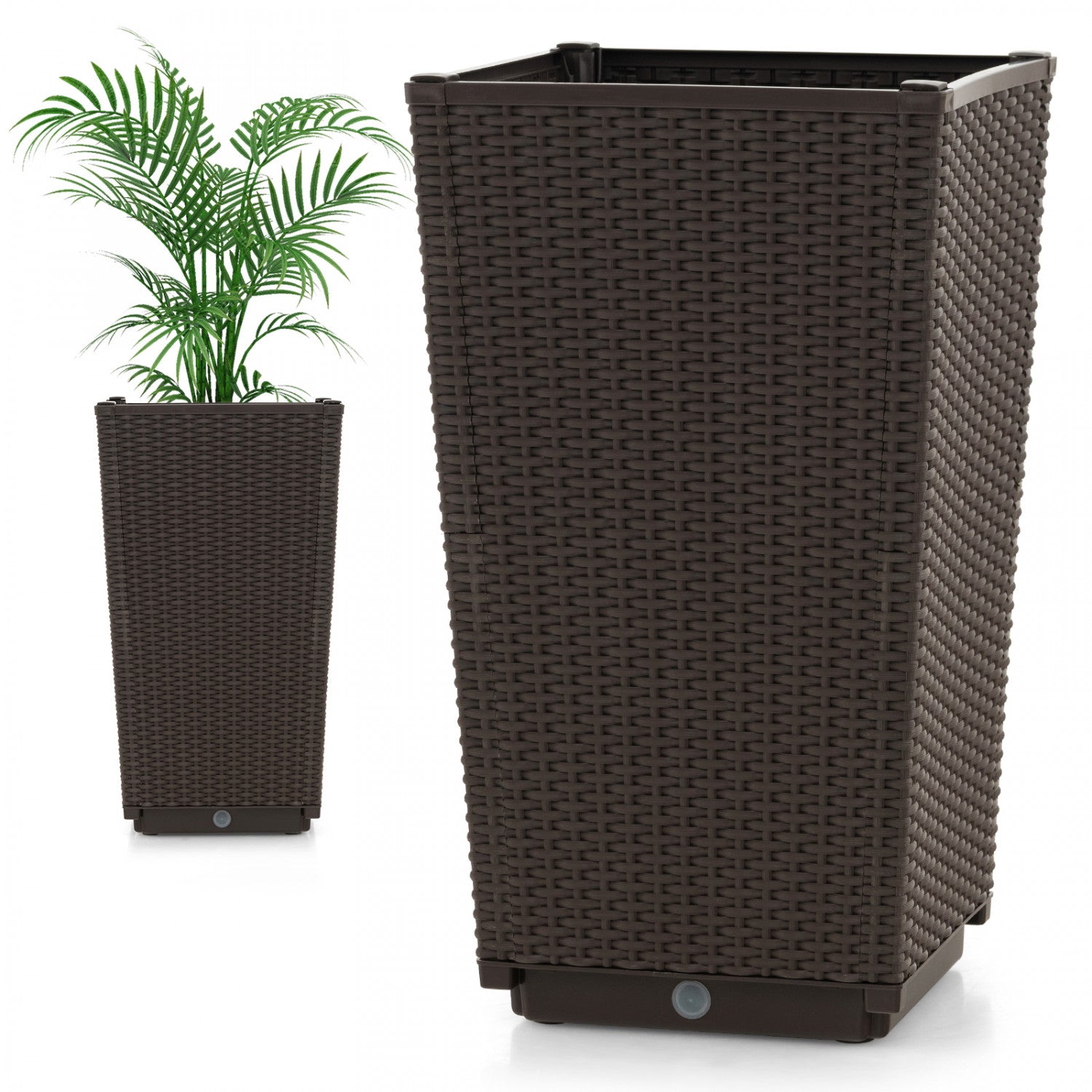 Costway 2pcs Outdoor Wicker Flower Pot 22.5"tall Planters With Drainage Hole Coffee