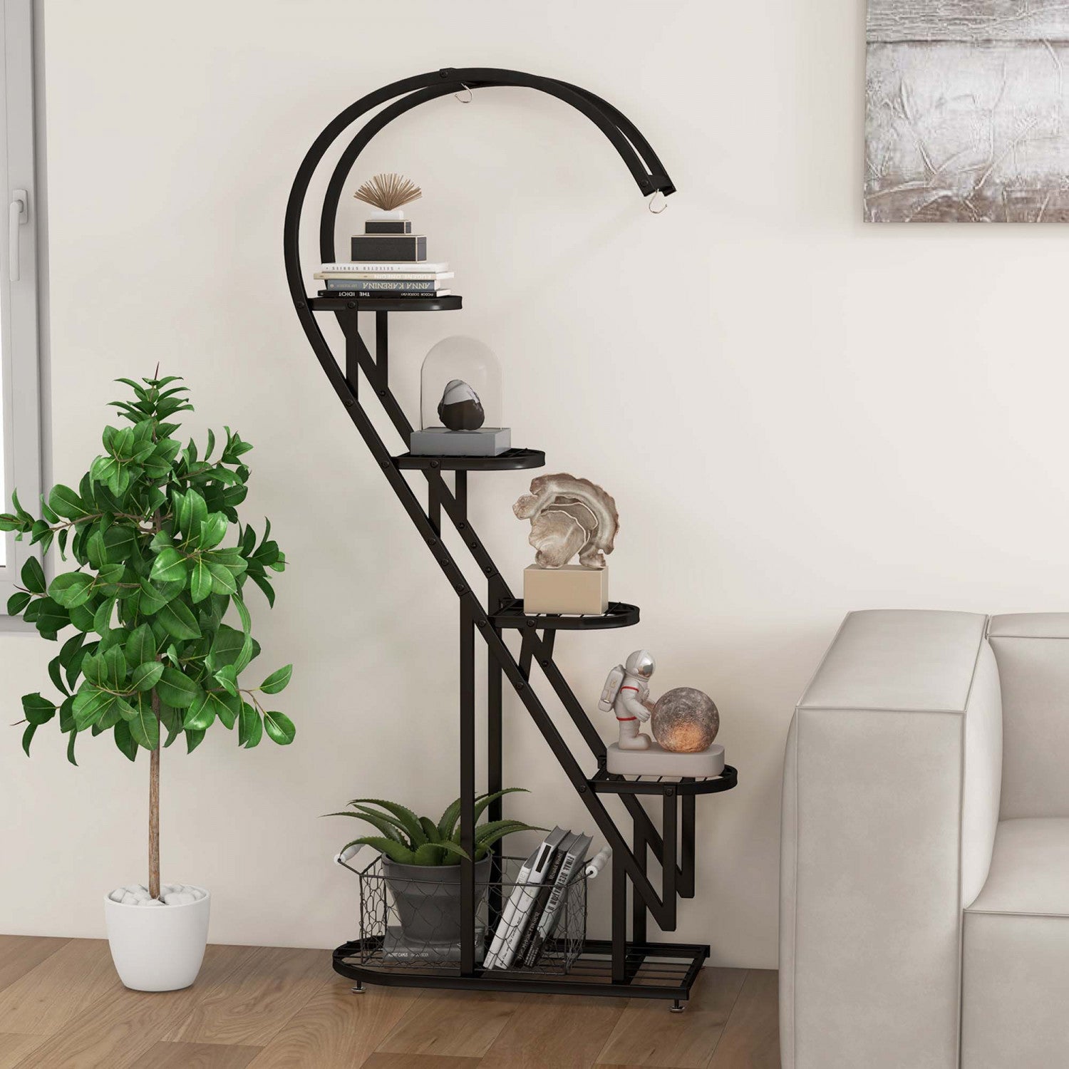 Costway 5 Tier Metal Plant Stand Heart-shaped Shelf With Hanging Hook For Multiple Plants Black