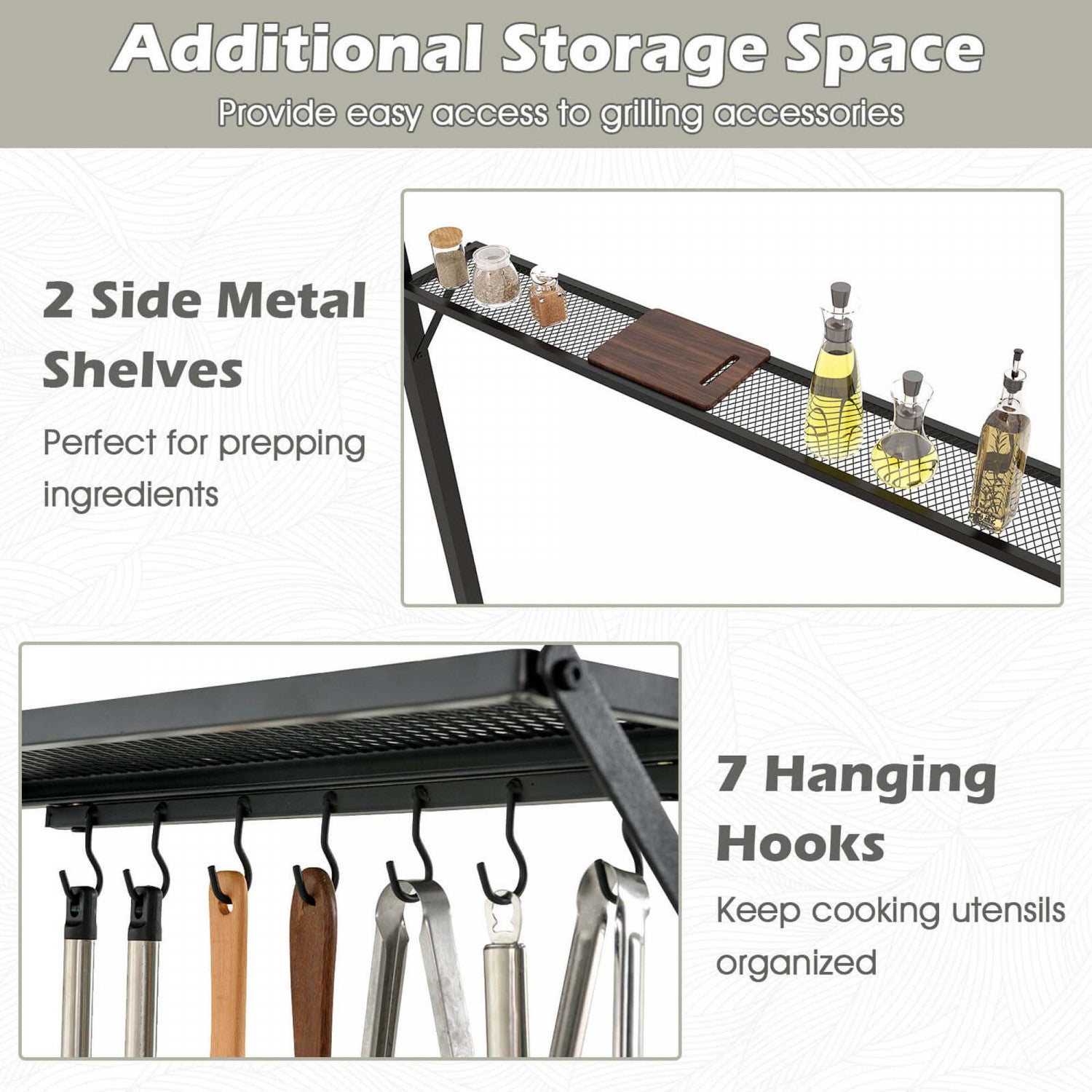 Costway 8' X 5' Grill Gazebo With 2 Shelves 7 Hooks Metal Frame Soft Top Beige
