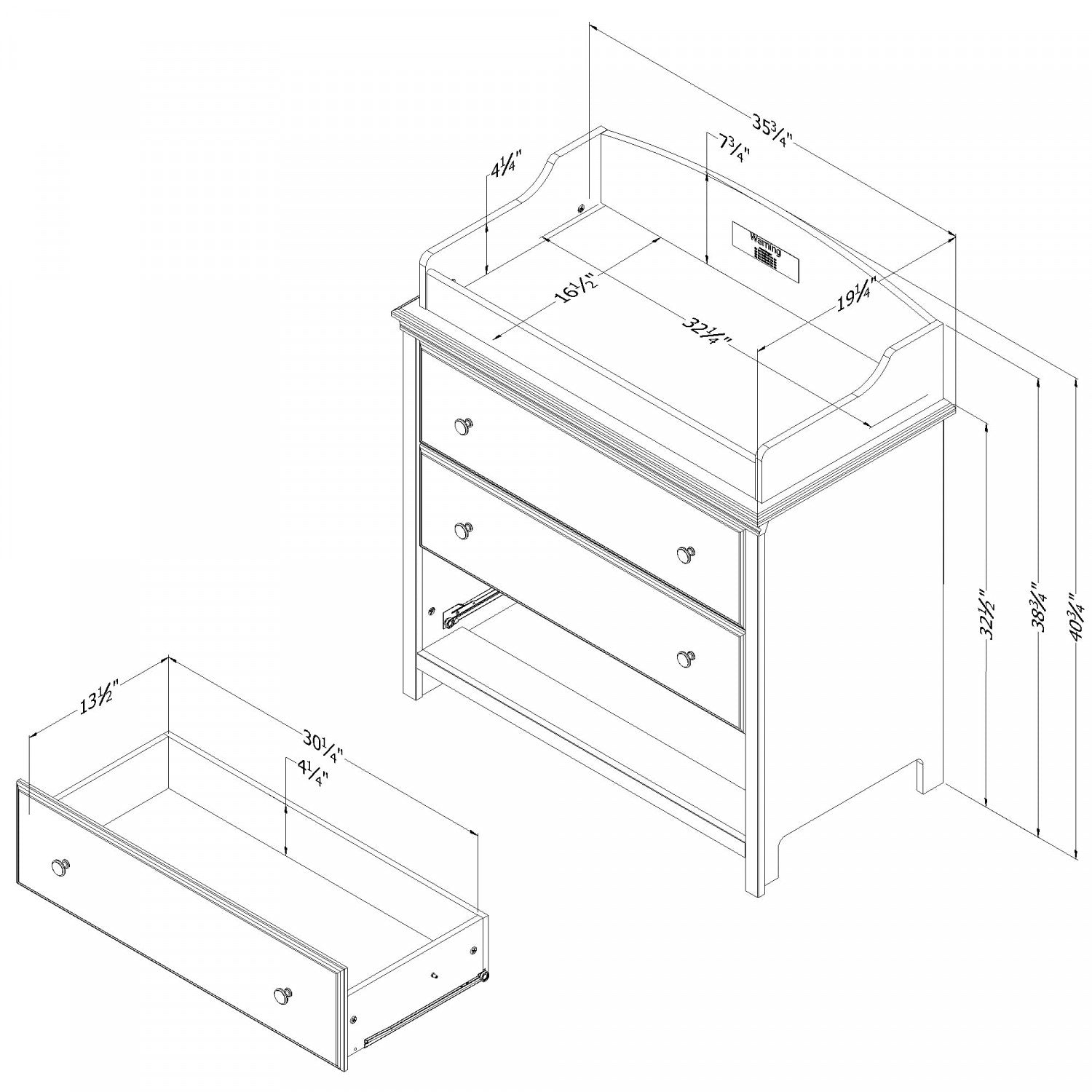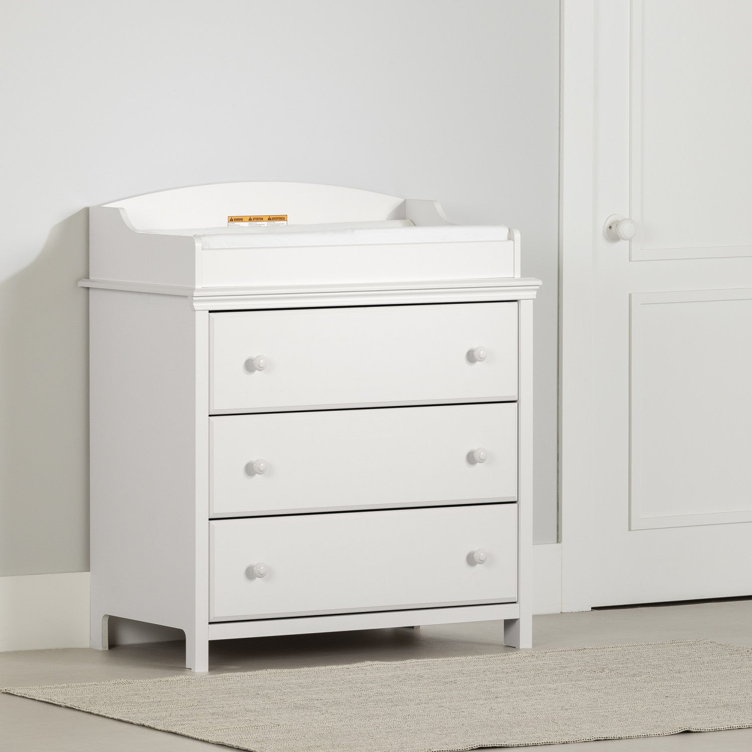 Elegant styling for your little one. A perfect solution for small spaces, this compact changing table from the cotton candy collection provides everything you need for a changing table and dresser. Its 3 large drawers give you all the storage space you need for clothing, bedding, and toys. The beveled top edge and drawer frames make this piece of furniture unique. Once baby outgrows the changing table, easily transform it into a dresser by removing the changing pad. The changing table is perfect for babies up to 30 lb. Smart storage solution this changing table features 3 spacious drawers with smooth metal slides for quiet and easy access. You can use the ample storage space for clothing, bedding and baby accessories. When your baby outgrows the changing table, easily transform it into an elegant dresser for your child’s bedroom by removing the changing pad.