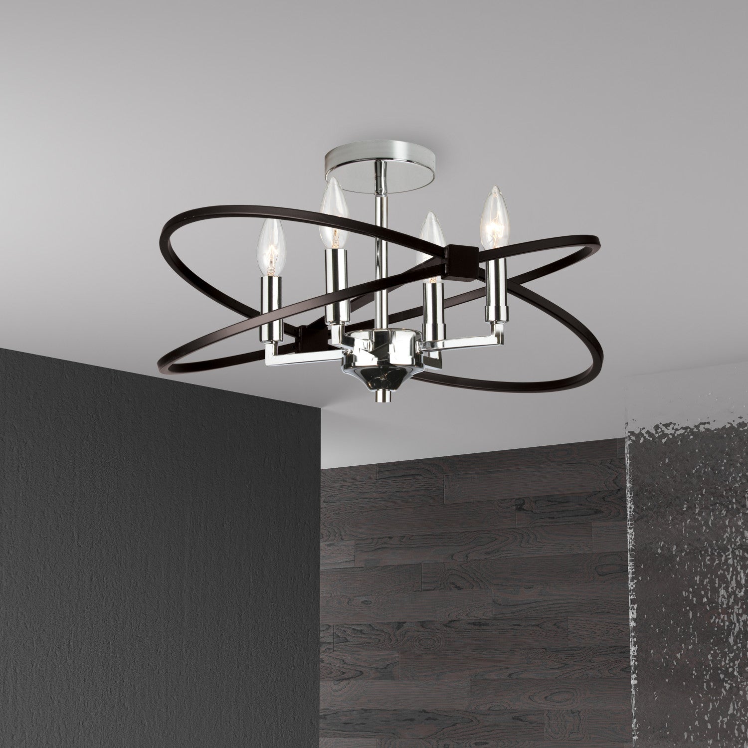 Dainolite Paloma 4 Light Semi-flush Mount Polished Chrome Matte Black Finish Lamp