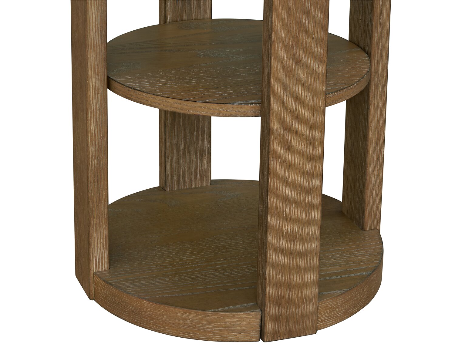Declan 18" Modern Round End Table with Shelf – Natural Wood
