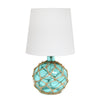 If you have that lovely beach house, condo, or rental you're looking to decorate, check out this nautical table lamp fitting for your coastal decor! The aqua glass base is netted in a natural rope, complemented by a pure white empire fabric shade. This lamp is just over a foot tall making ideal to sit on your nightstand, dresser, in your living room, entry way, and just about any room in your home!